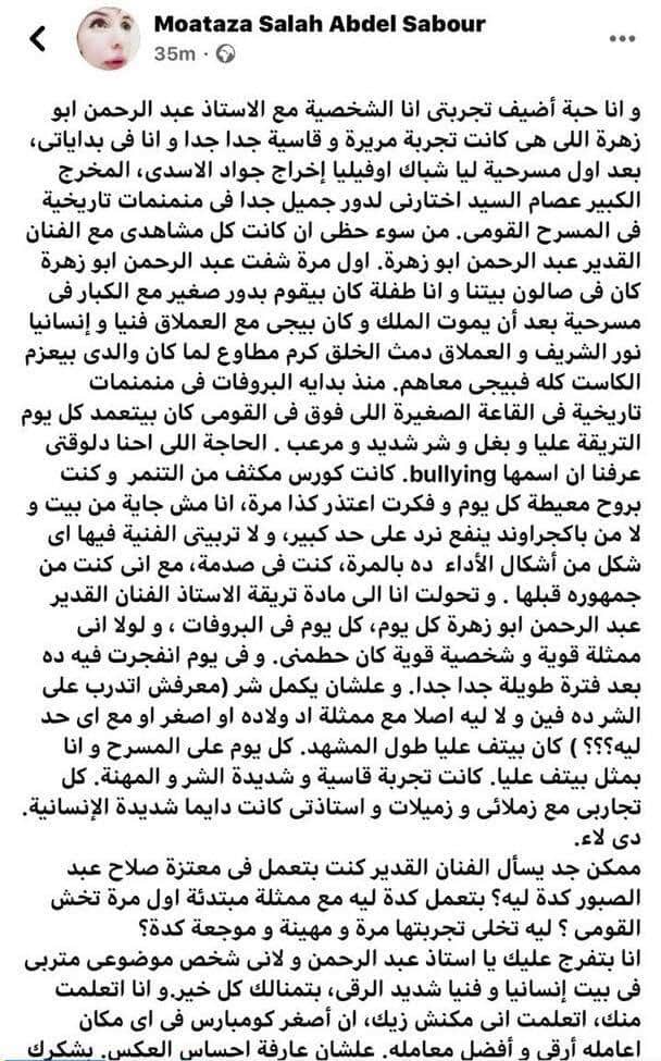 التاريخ السري لـ معتزة صلاح عبد الصبور التي هاجمت عبد الرحمن أبو زهرة فرندة